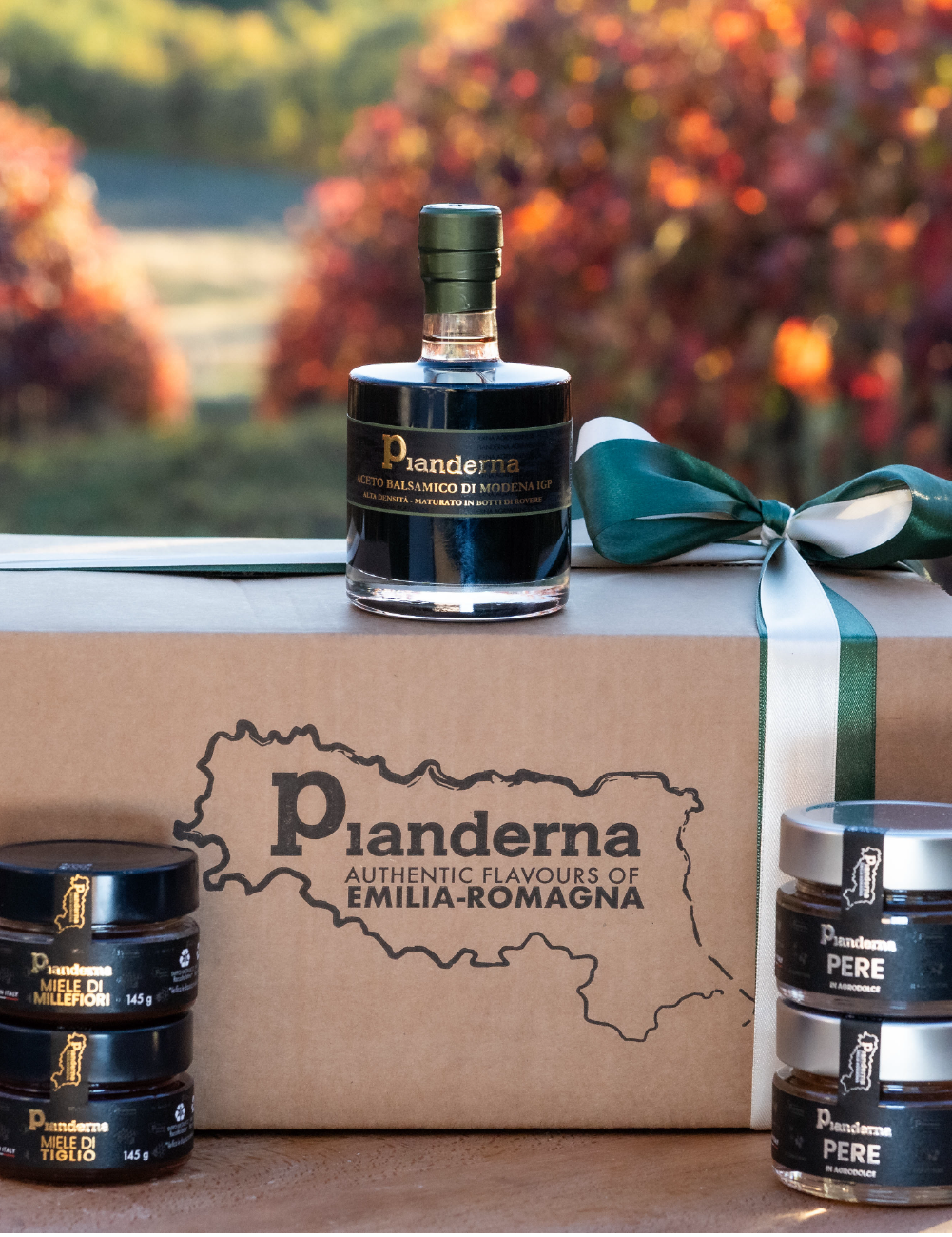 Un omaggio alla dolcezza e alla genuinità emiliana: Miele Millefiori, Miele di Acacia e due composte di frutta con aceto balsamico IGP accompagnate da un aceto ad alta densità. Un box elegante e naturale per colazioni, abbinamenti salati o regali gourmet.