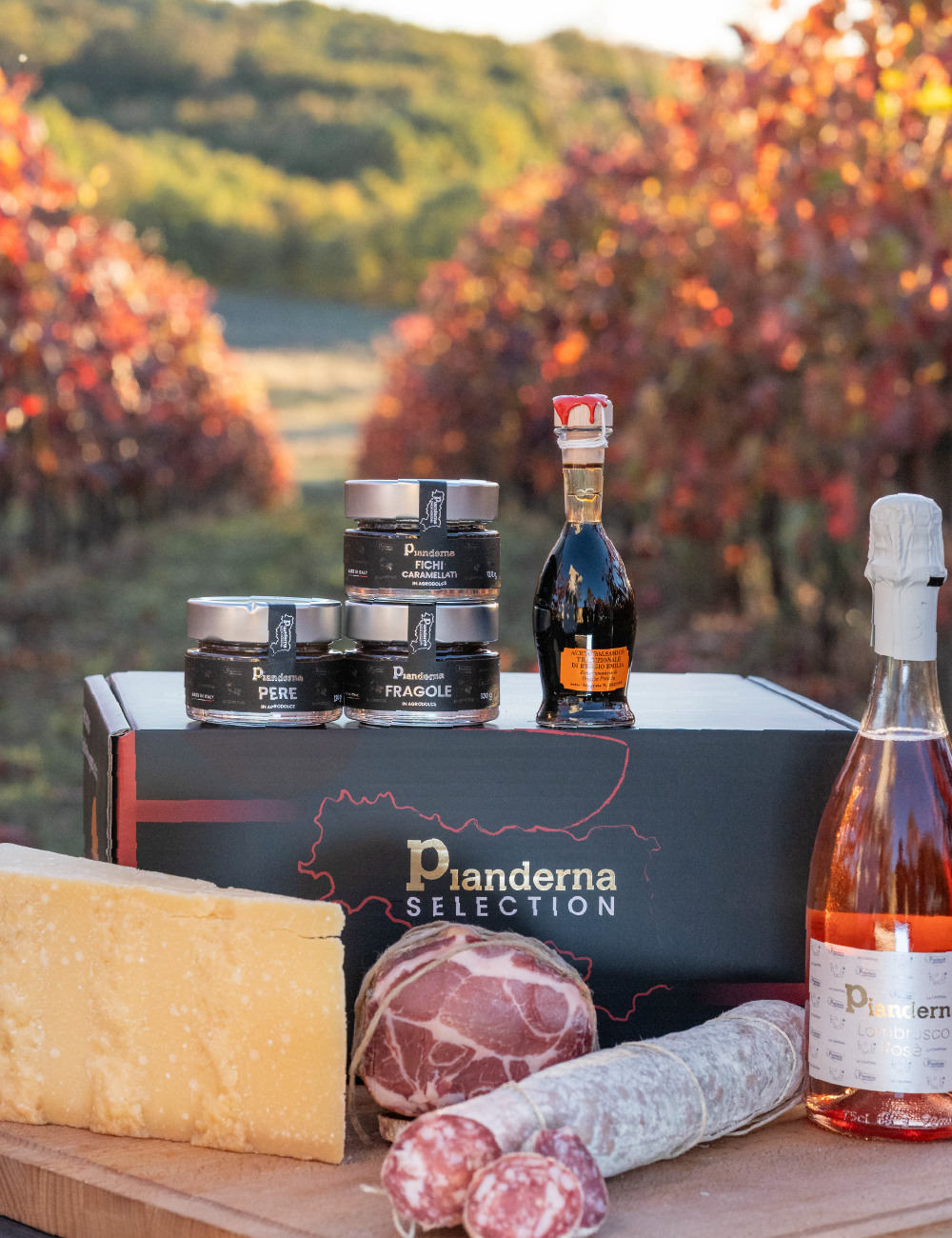 Aceto tradizionale DOP 12 anni, Parmigiano 30 mesi, salumi e Lambrusco Rosé DOC.